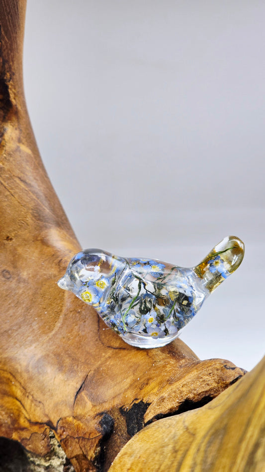 Fairy Wren Keyring with Real Forget-me-not & Gold Flakes