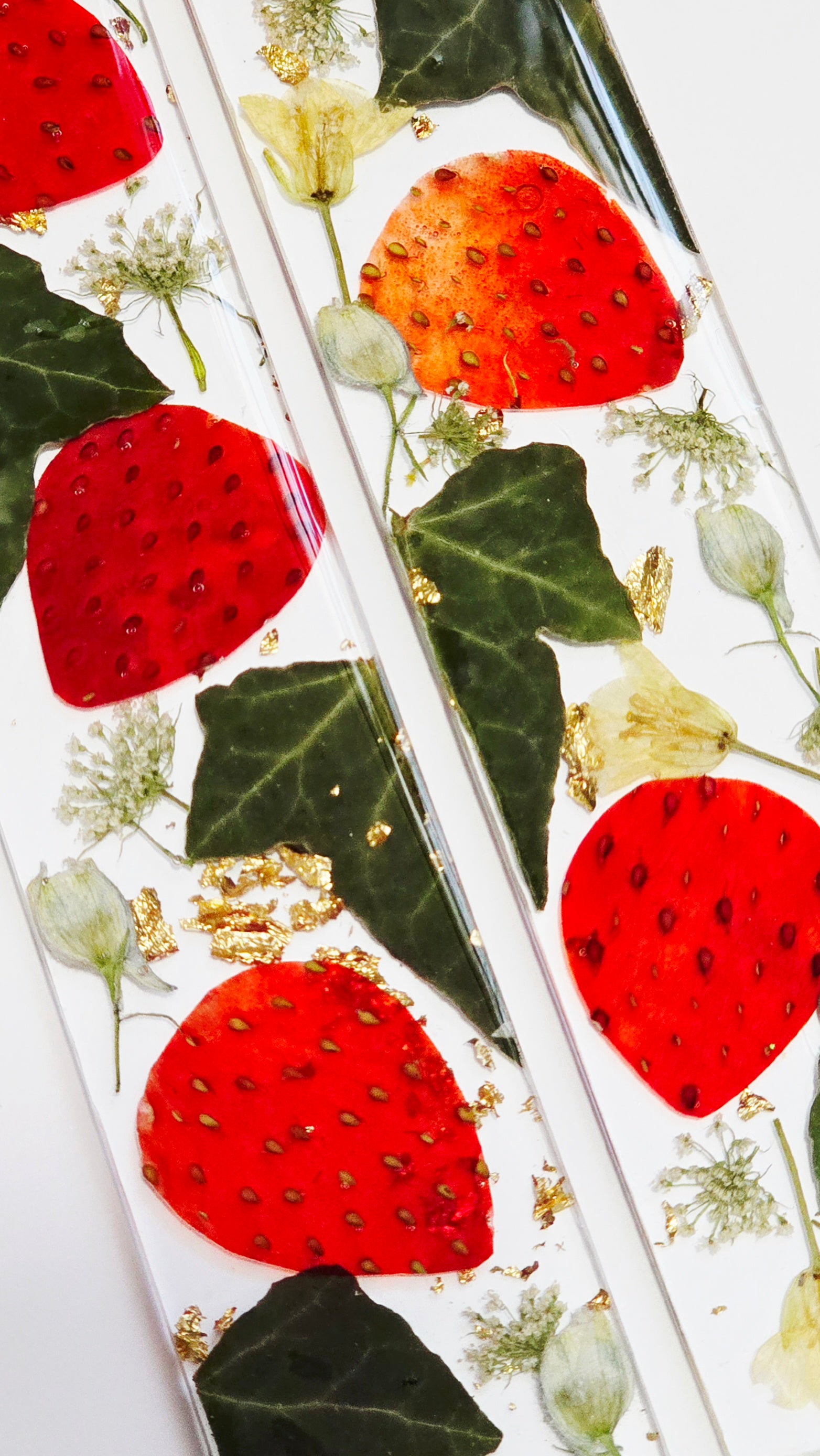 Introducing our stunning real preserved flower and strawberry bookmarks -
