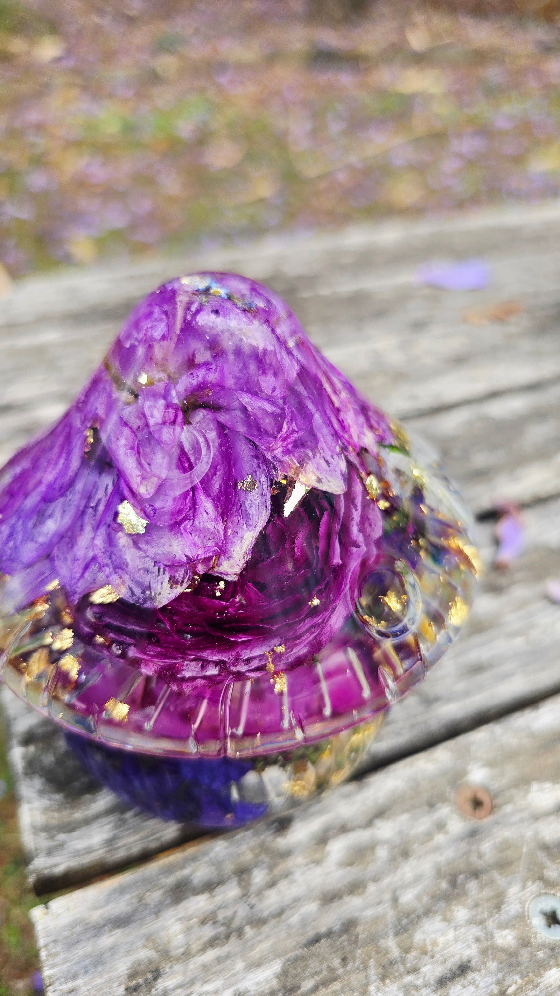 #101 - Bring a touch of whimsy and natural beauty into your home with this handcrafted mushroom trinket jar, featuring real preserved flowers embedded in crystal-clear resin. Each jar is a miniature garden, with vibrant blooms encapsulated in the lid and base, making every piece truly one-of-a-kind.