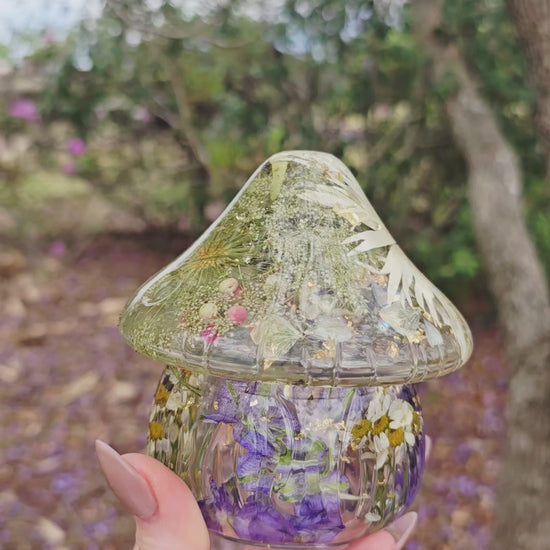 Each mushroom trinket jar is individually handcrafted, making it a unique and enchanting keepsake - a tiny piece of preserved nature to treasure forever.